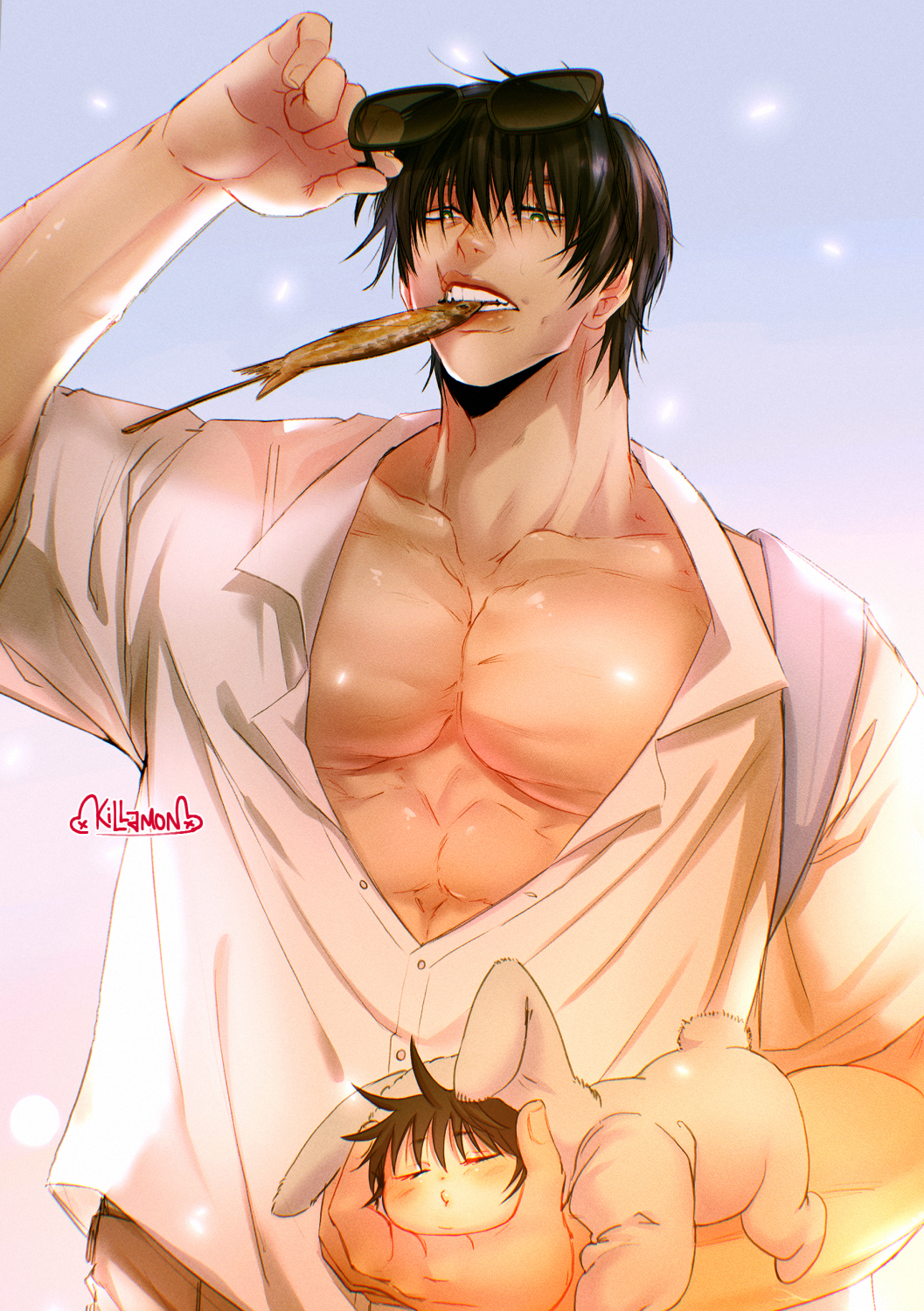 - Mini print of Toji and baby Megumi Fushiguro from the series "Jujutsu Kaisen"